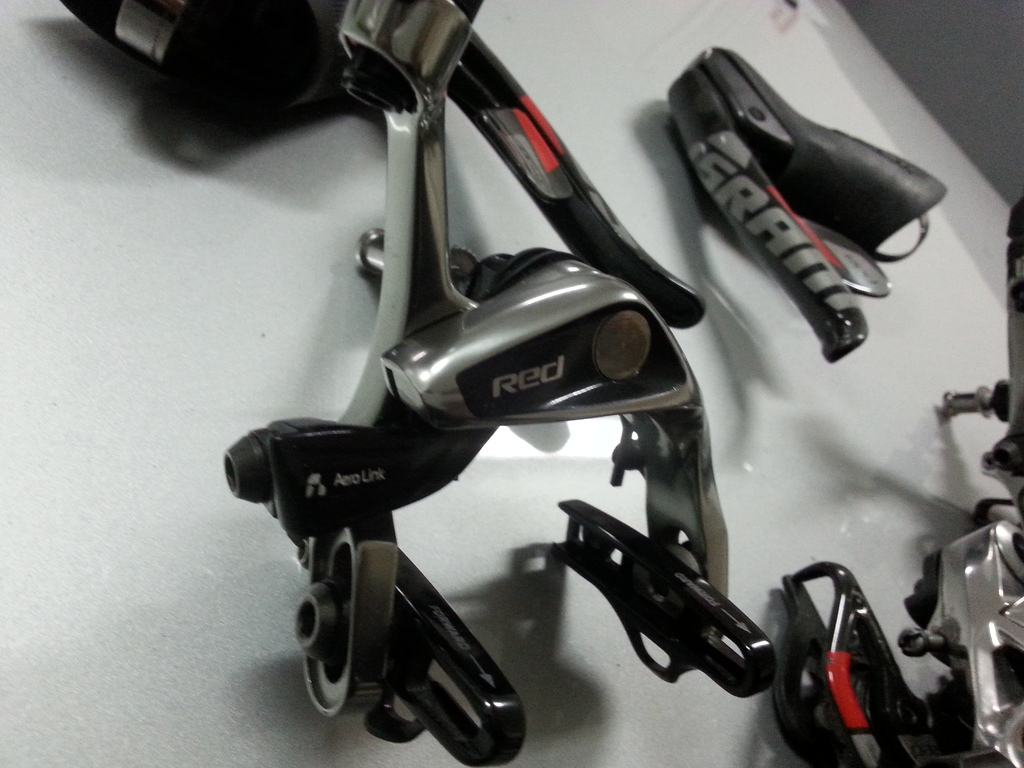 VENDIDO Hola Vendo grupo sram red del 2013 con muy poco uso. bielas de 170 mm para bb30 slk light.puentes de freno, manetas, cambio trasero, desviador cassete red modelo 2012 11-23 todo en muy buenas condiciones. 850 euros VENDIDO