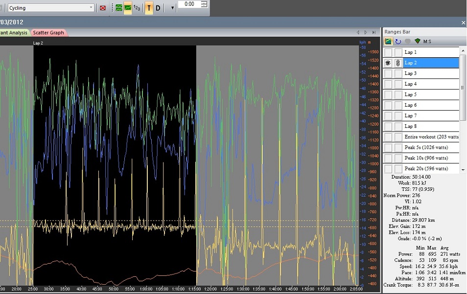 Bueno, pues este ha sido mi entreno de hoy. Sweet Spot al 90% del FTP con latigazos por encima de 600w cada 5' a partir del minuto 10. Después, 5 sprines de 1000w cada uno.
