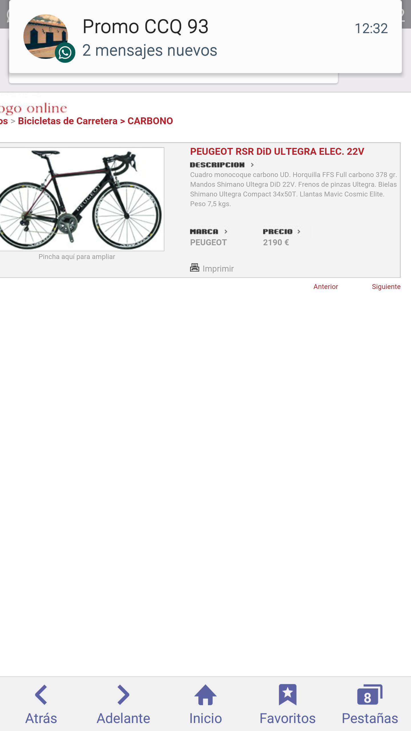 ToT Buenas tardes.. es la primera vez que escribo en un foro pero tengo muchas dudas y necesito aclararme.. he visto una bici y de hecho la tengo reservada para mi. La bici es una peugeot srs en ultegra completo did electrónico y me enamore cuesta 2199 euros nueva. La cuestión es , sería mi primera bici para empezar a rodar y creo que me estoy excediendo pero el dependiente me la vendió tan bien que caí que valoración le dan a la bici, he intentado buscarla por la web y no hay nada agradezco mucho sus comentarios y consejos, muchas gracias.