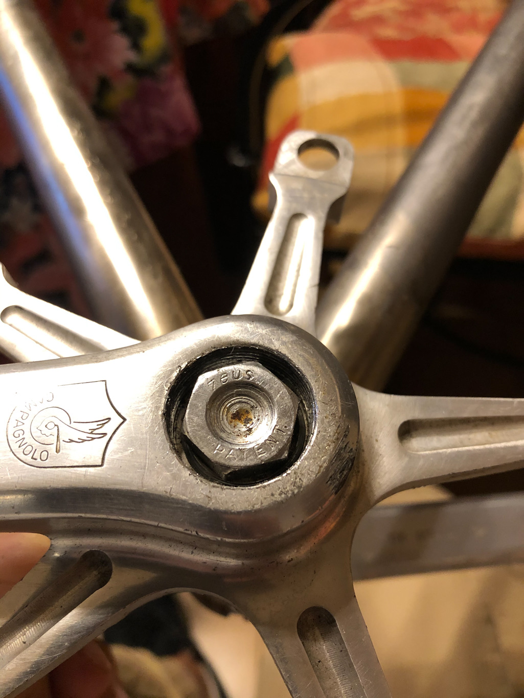Hola. Por favor ¿podéis decirme qué herramienta debo comprar para desenroscar el tornillo de estas bielas (ver imagen adjunta)? Las llaves de tubo normales no entran y en un taller me han dicho que no la podían quitar. La bici es una Colnago de carreras antigua que quiero restaurar. Muchas gracias