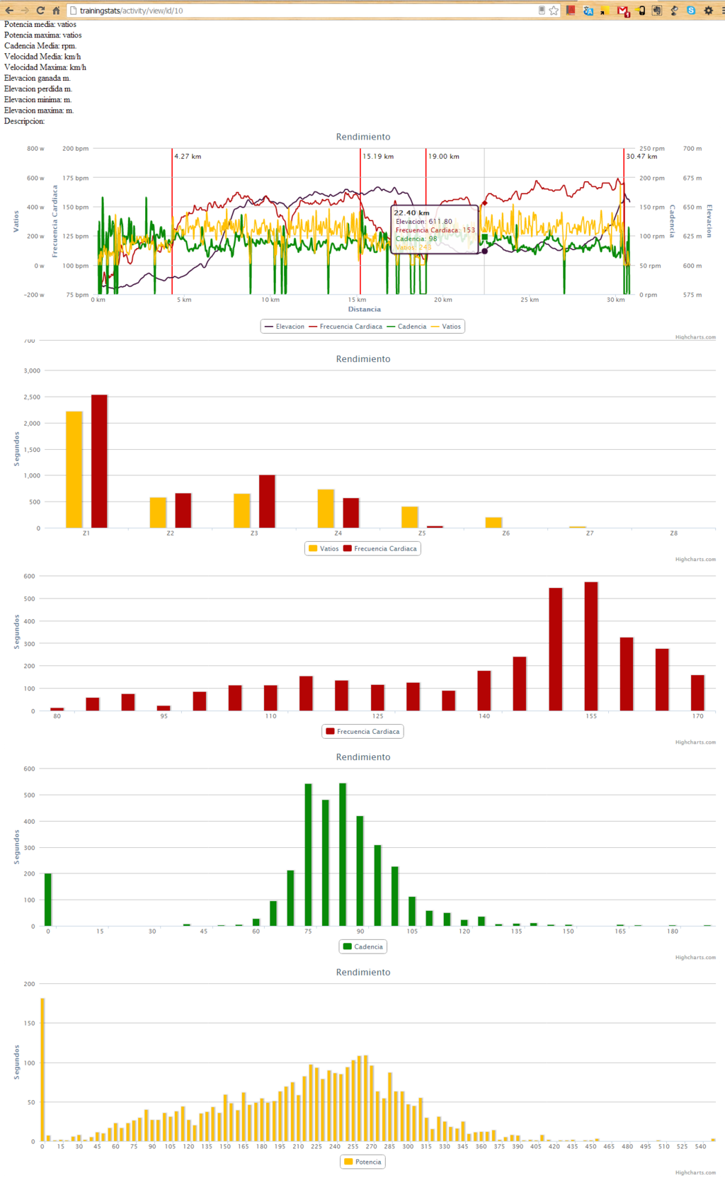 Por ahora os dejo con una captura de pantalla de la vista de un entrenamiento. Todavía faltan muchas características como la vista de mapa, colores y colocación de gráficas y demás pero sirve para hacerse una idea de lo que va a contener.