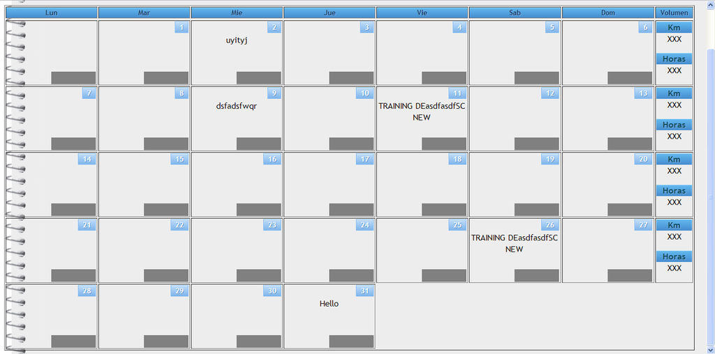 Pantalla prototipo de calendario
