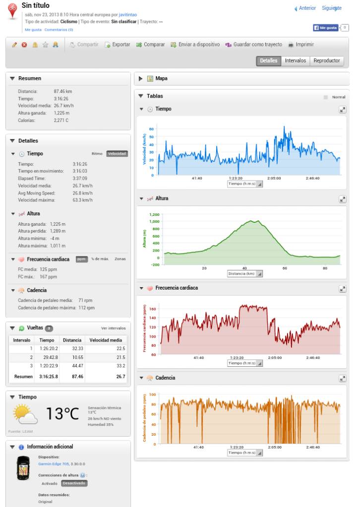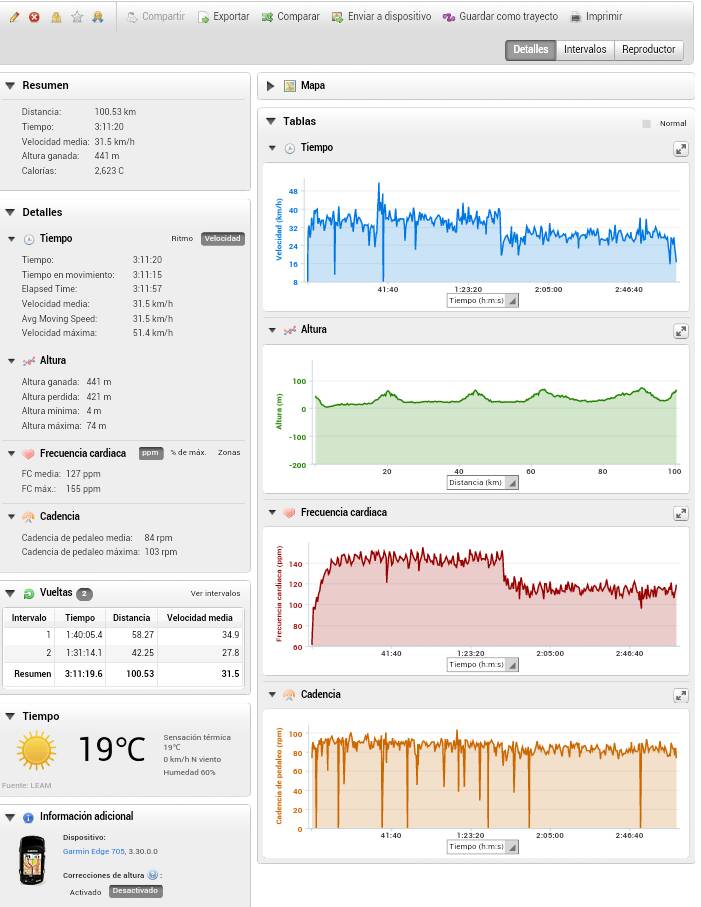 90' 140pm 89 cadencia 225m desnivel 35km/h
