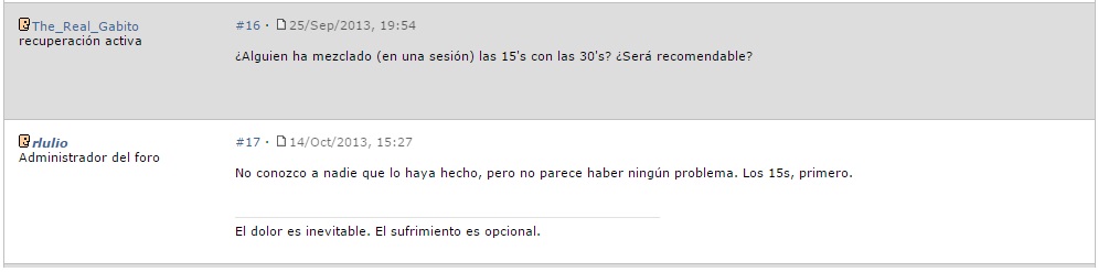 Si se consigue el mismo objetivo pero en mi caso los 15 me salen casi un 5% menos de watios medios que los 30 (manteniendo el off parecido) puedo interpretar que mis 15 son un punto débil y que los tengo que entrenar.....o no