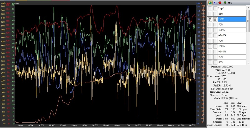 Al final en los 65mim de HOP 261w medios es decir al 86%,269w normalizados a 152bpm medios.