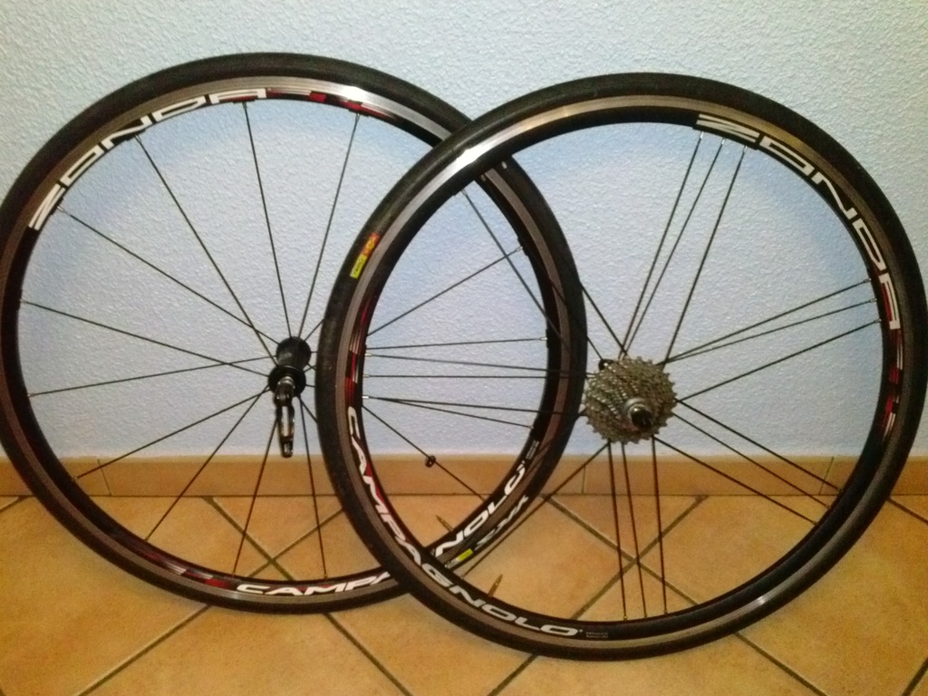 Hola vendo ruedas campagnolo zonda con muy poco uso con piña ultegra 10v (11-25) y cubiertas mavic con regalo de cubierta sin estrenar duo comp. No envio por correo y vivo en zona sur de madrid.