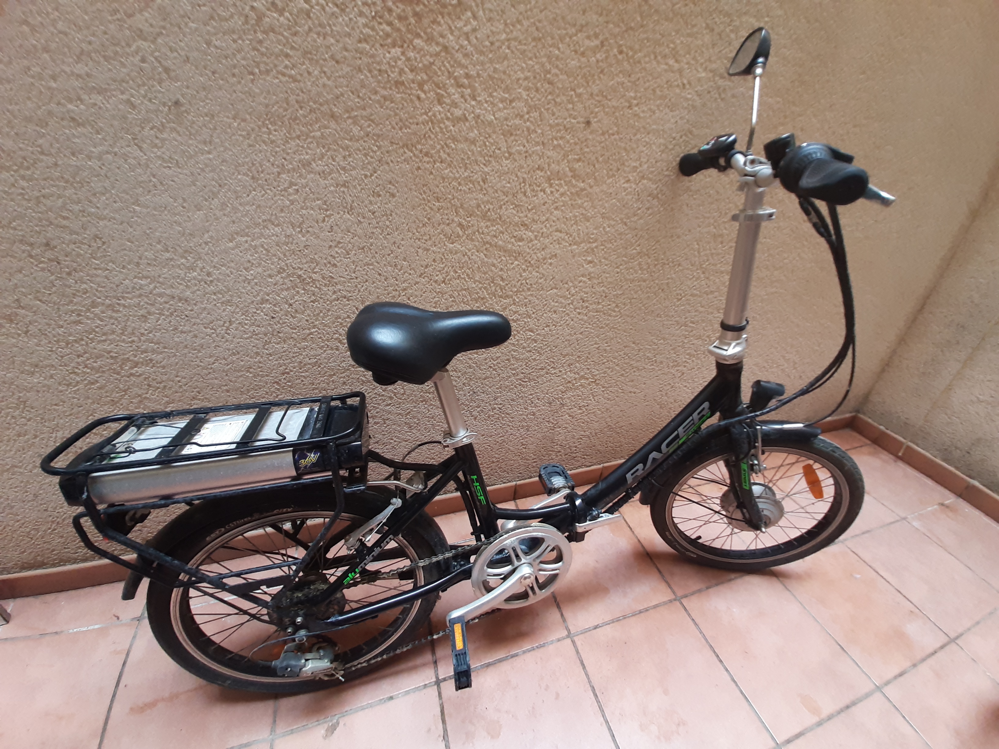 Racer Street Bicicleta Eléctrica Plegable Urbana, 6 velocidades + cargador de batería. Usada como 5 veces en 4 años. Está un poco oxidada en los manillares de tenerla en la terraza sin usar. Pero funciona perfectamente. Venir a recoger por favor.