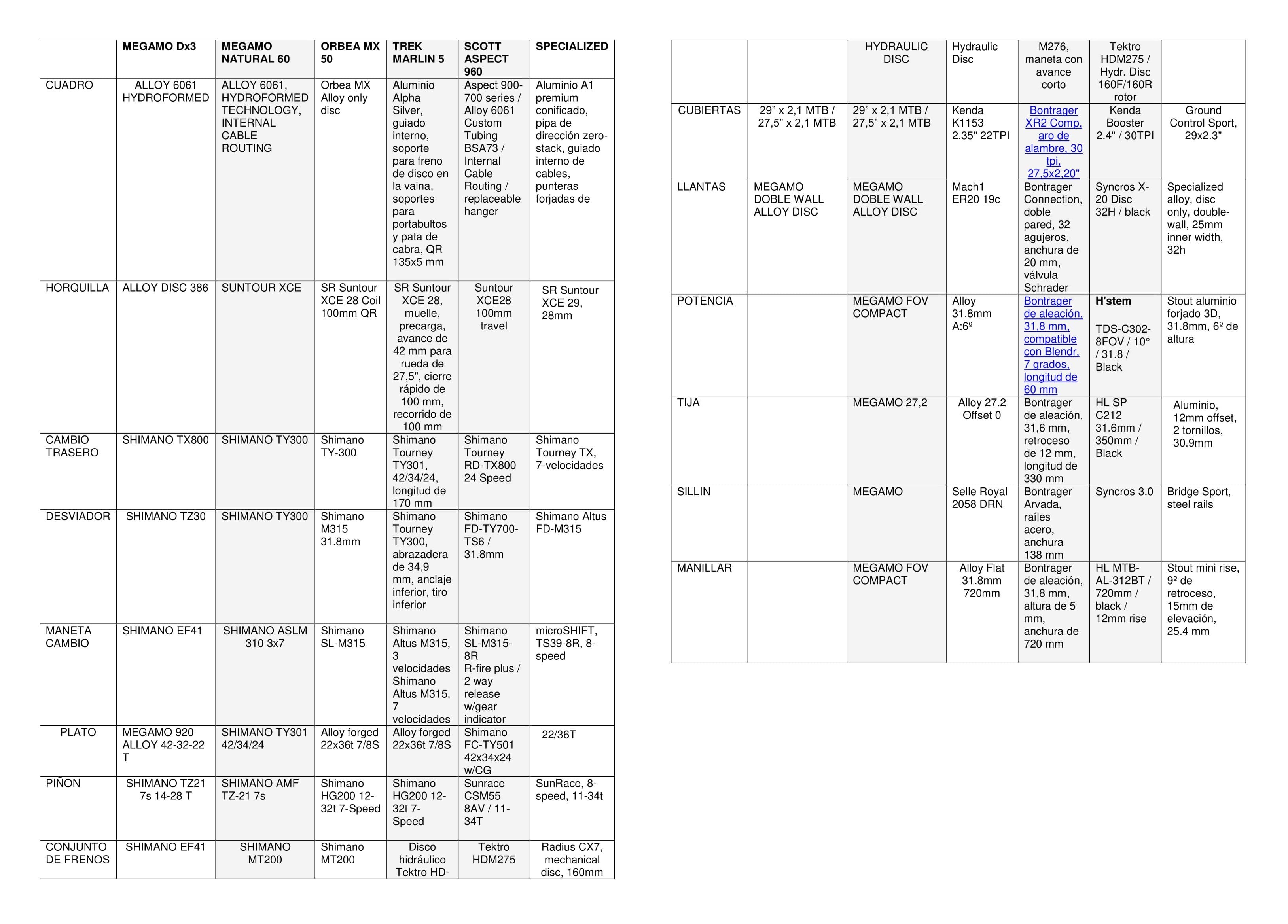 Estoy pensando en comprarme una bicicleta y tengo algunas vistas os voy a dejar una tabla con las tallas de las bicicletas y otra con los componentes. Suelo hacer pequeñas rutas de 20-50km normalmente en caminos