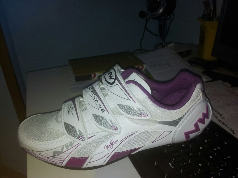Hola, vendo zapatillas para bici de carretera Northwave Venus. Blancas y Moradas.