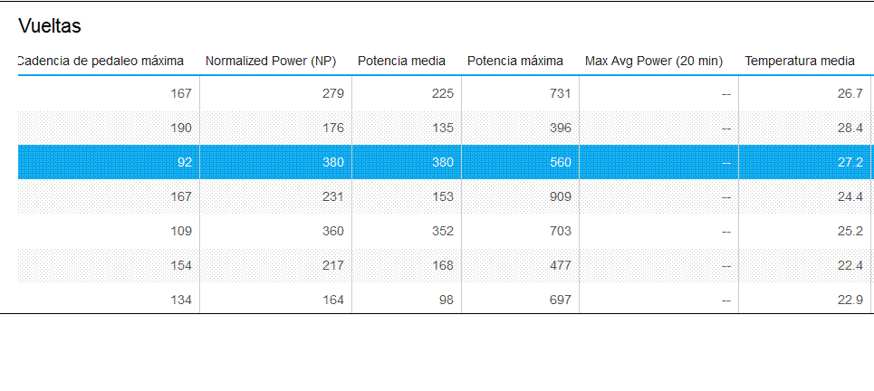 Y la potencia media para mí el dato principal a llevar, junto con la potencia a 3 segundos.