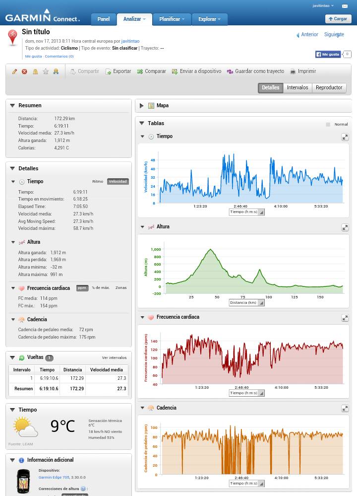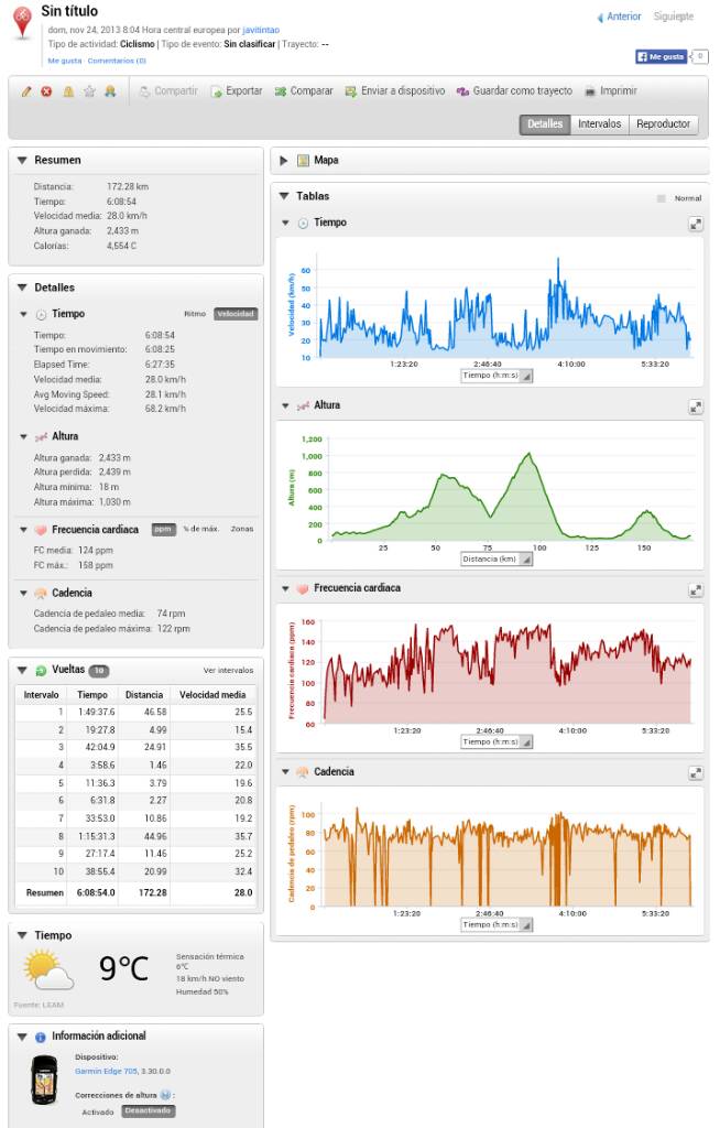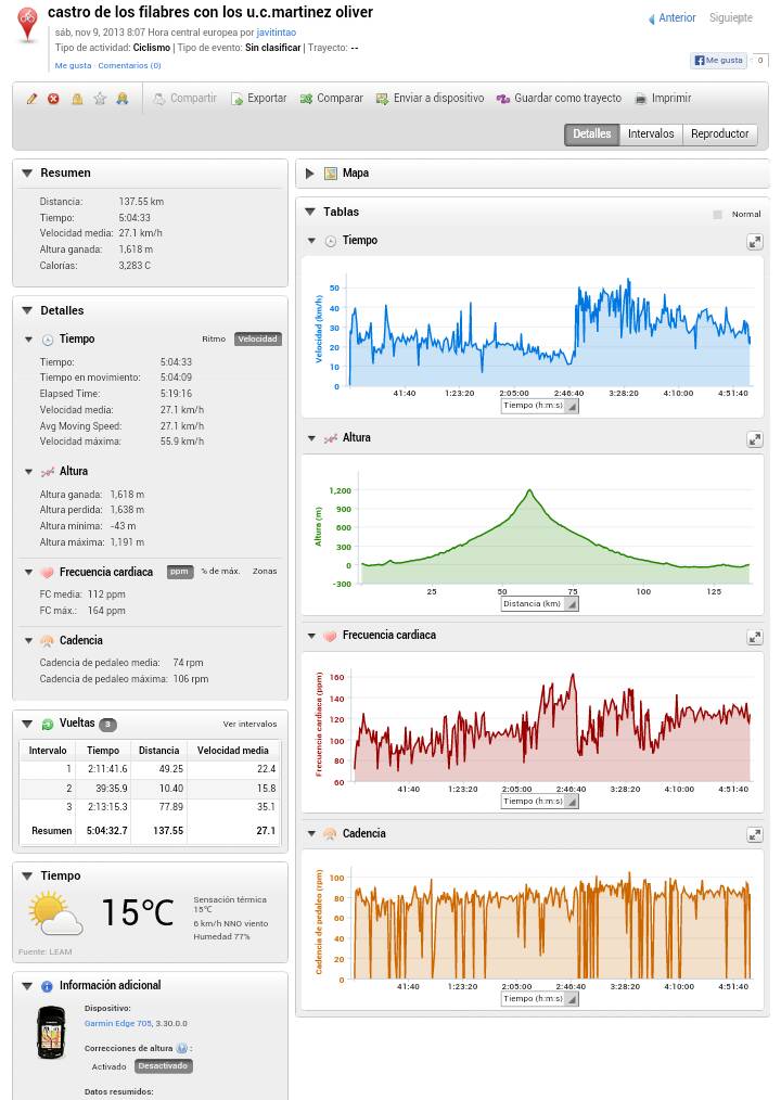 90' 140pm 89 cadencia 225m desnivel 35km/h