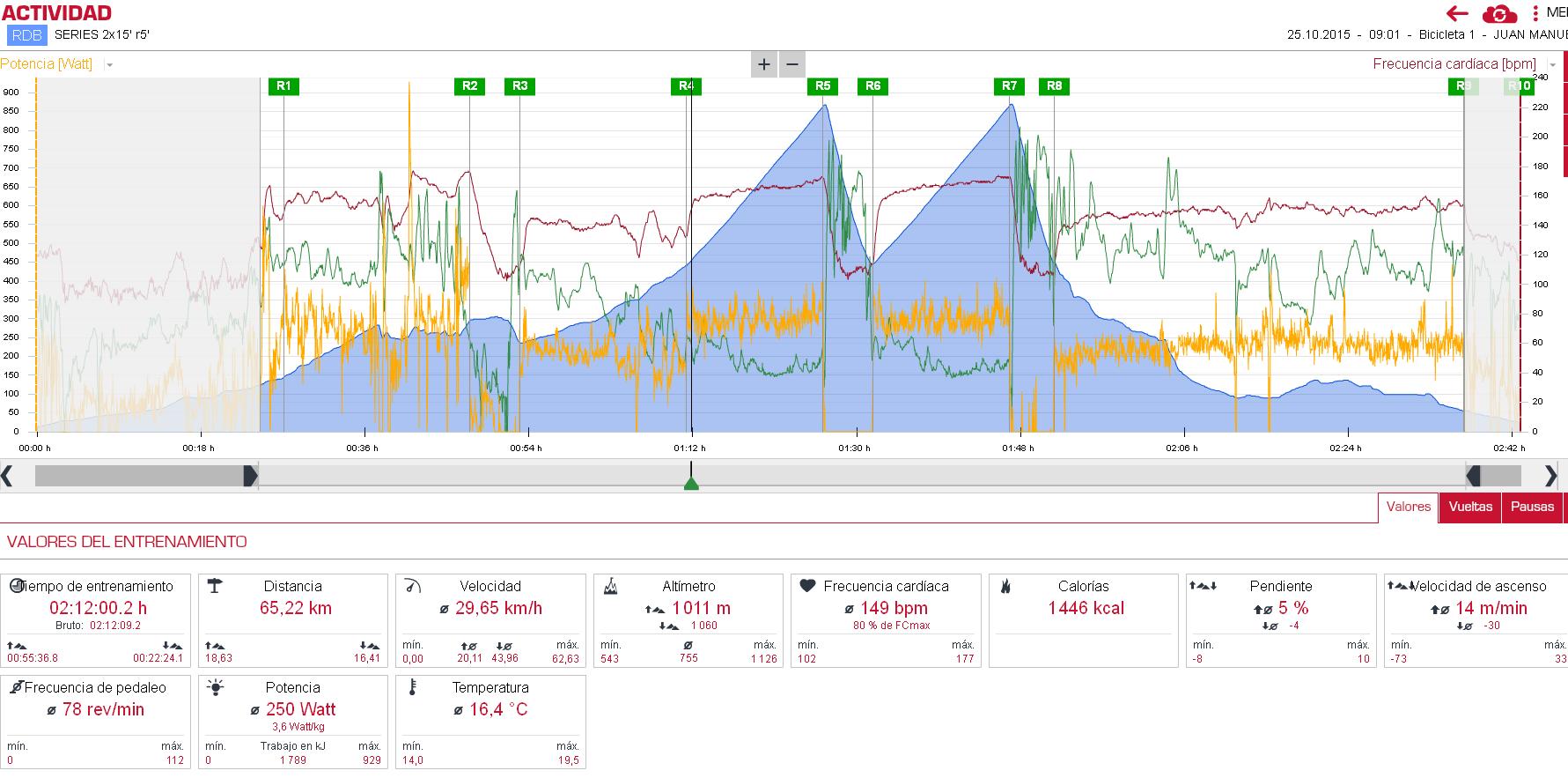 Bien. Héramos un grupo de 60-70 ciclistas. El ritmo muy suave al principio, luego se tensó y fuimos un rato a palos. La subida la hice de trankis, a 227wm, con un compañero.
