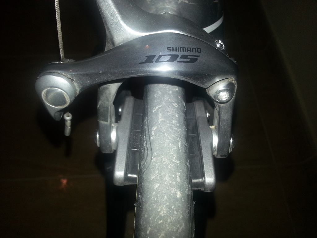 hoy al salir a entrenar y estrenar las ruedas nuevas bajando por un puerto de montaña he frenado fuerte y la rueda de delante frena a trompicones y la de atrás a empezado a chirriar, que me aconsejáis? os adjunto fotos de los puentes de freno y de las zapatas, me han dicho que le ponga unas mas blandas