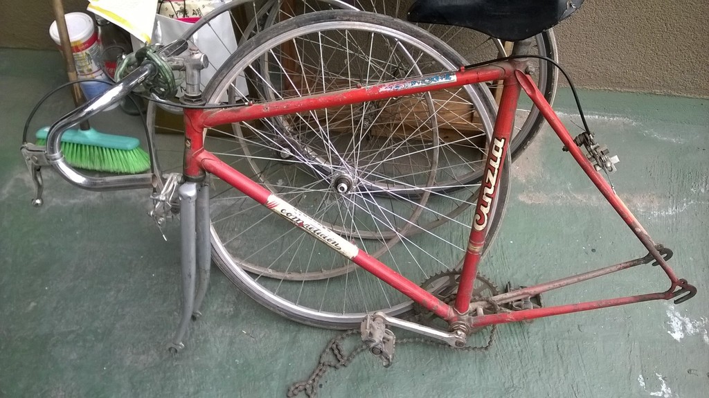 Hola a todos en el foro, mi nombre es Martin, soy de argentina y hace poco que e comenzado con el tema del ciclismo. tengo una mtb Merida y con ella voy a todos lados, al trabajo, a ver a mi hijo y de paseo también. Al poco tiempo me di cuenta que esto de la bici era adictivo ja. y no solo eso también me llamo la atención otras bicicletas, las antiguas. Buscando un poco di con una bici de ruta o pista, no se bien la diferencia entre ambas, pero en fin es que no encuentro datos ni nada de la misma en internet. Tiene calcomanias que dicen ser de marca cinzia ciclismo competición. Entre a este foro y bueno si alguno de ustedes podria contarme algo sobre la marca cinzia y si se an hecho bicis de carrera o algun otro dato que puedan aportar les agradecería mucho. dejo una foto... Saludos...!