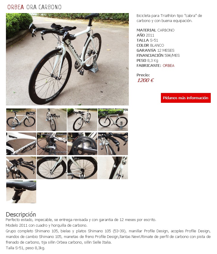 Hola, sinceramente no entiendo mucho de bicicletas y estoy buscando una. Necesito la opinión sobre esta en relación calidad precio, ya que realizo triatlones y la veo bastante bien. Muchas Gracias!