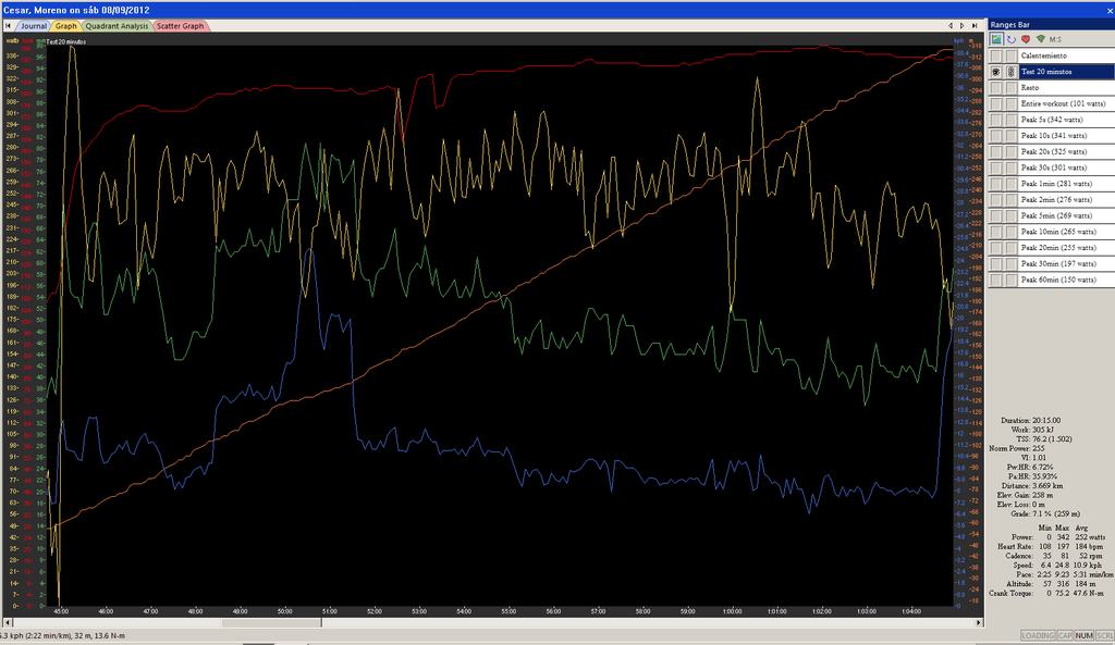Entrenamiento basado en Potencia ⇒ Gráfico test 20 minutos