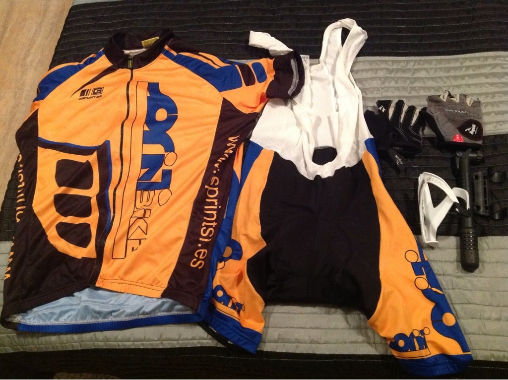 Hola vendo Casco TKX xtreme airline + maillot y culotte GSTAR gel + guantes ROGELLI gel todo por 50 euros utilitzado una sola vez